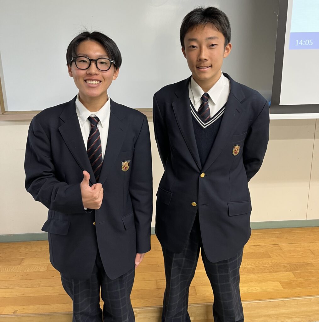 たっぷり時間があるので、いつも以上に生徒たちとコミュニケーションをとりながら進めていったところ、興味深い反応がありました。休憩時間に多くの生徒が質問にやってきて、それだけで嬉しいのですが、特に熱心だったのが秋山瑠輝くん、鈴木蒼くんです。