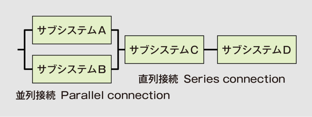 信頼性ブロック図には以下に示す2つの接続方法があり、これらを組み合わせてシステム全体を表現する。