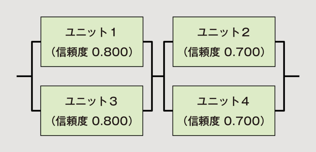 並列接続と直列接続を持つ信頼性ブロック図の例を図2に示す。