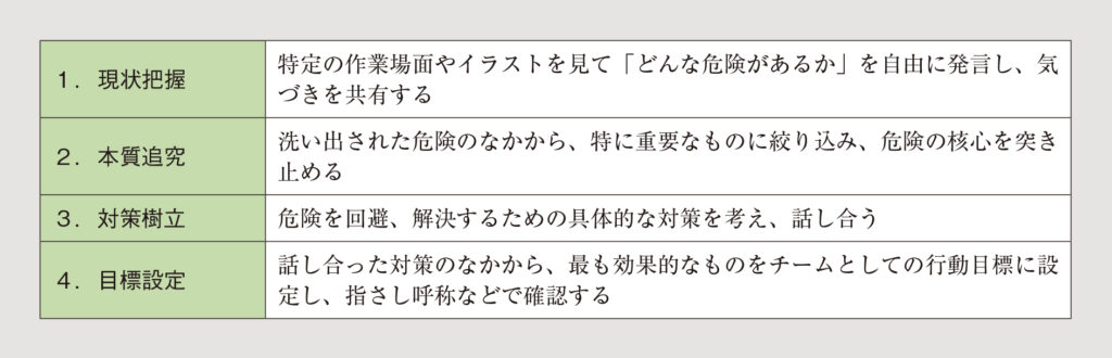 KYTは、一般に表4の4つのステップ(4ラウンド法)で進める。