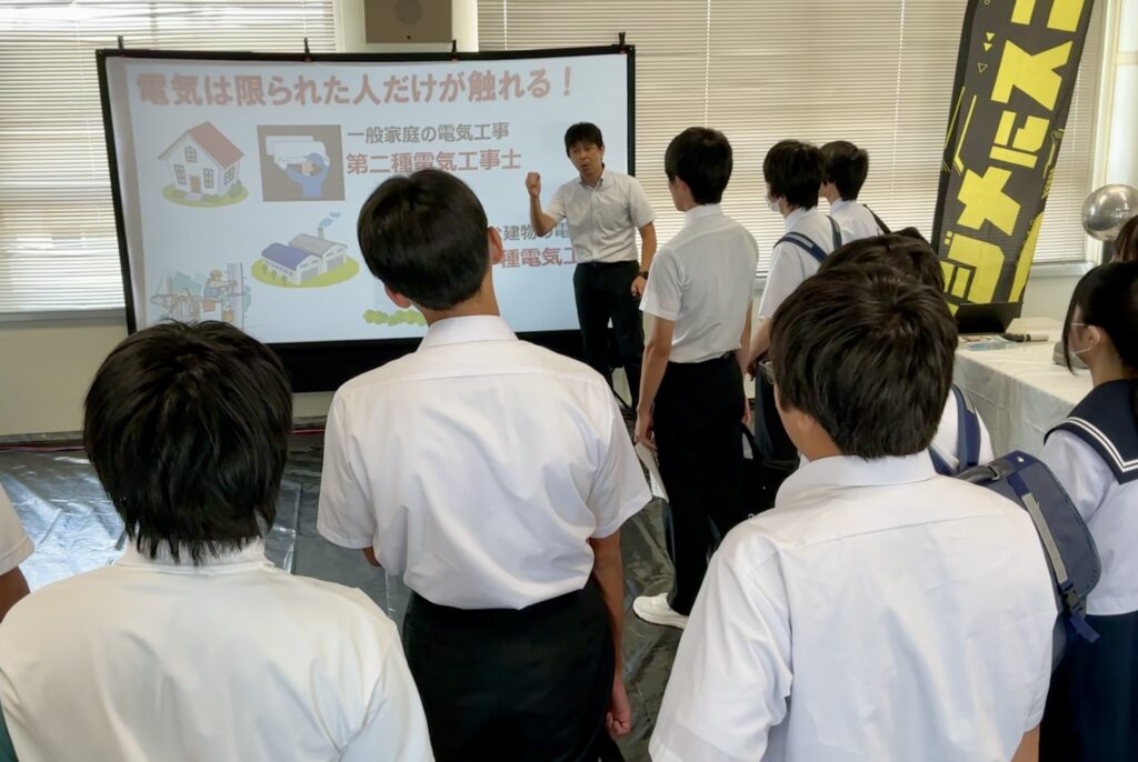 第二種電気工事士については、多くの学校は2年生で受験し、国家資格の取得に力を入れている学校でも1年生の下期です。それが、すでに1年生でクリアしているなんて……。これは、電験のタネをまくには最高の環境が整っている学校かもしれないと思いながら「キャリア教育支援」を始めました。