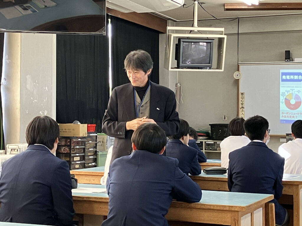 その高山市にある高山工業高校には、元気いっぱいな生徒たちがいました。私は寒さで震えていたところ、教室には上着すら着ていない生徒が3割ほど。