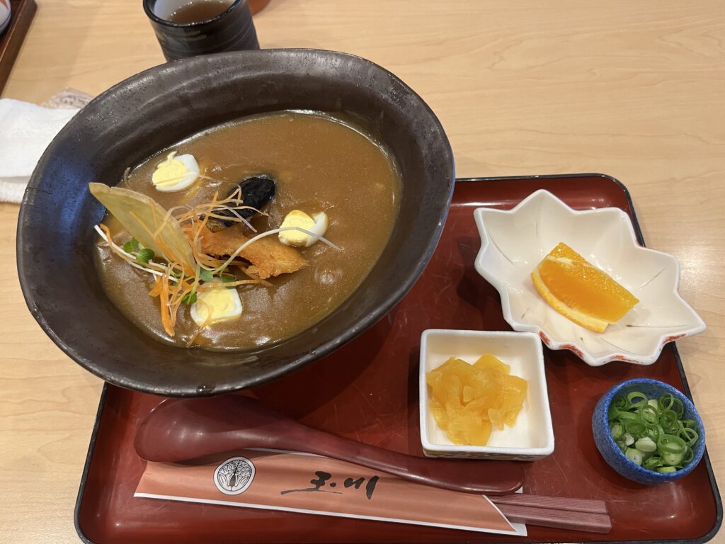 さて、これは余談ですが、「豊橋カレーうどん」って、ご存じですか? カレーうどんのなかにトロロでガードされたごはんが入っているソウルフードです。せっかく豊橋に行くということで、老舗のうどん屋に直行しました。