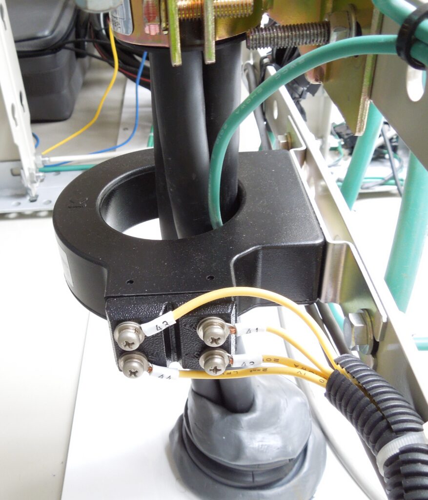 ZCTは単相2線式であれば2線を、三相3線式であれば3線を一括で貫通させ、各配電線に流れる電流の合成値(ベクトル和)から、その位置での地絡電流を検出することができる。