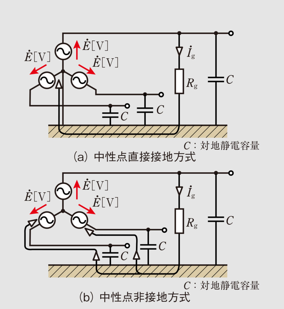 (2)中性点接地方式と地絡電流の流れ