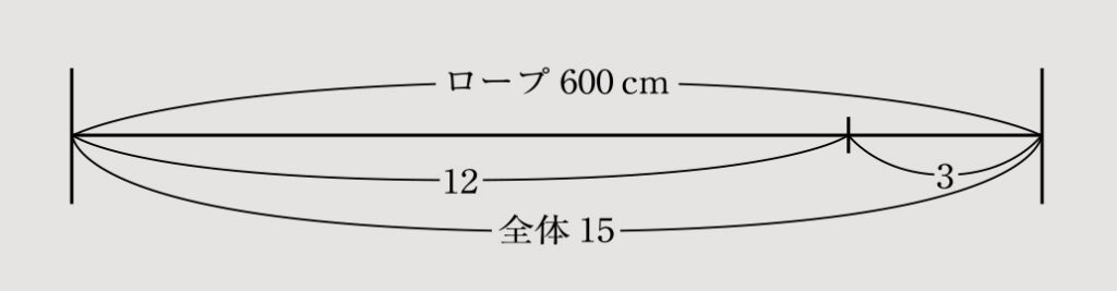 (1)長さ600cmのロープを12:3になるように切ります。それぞれ何cmになるか求めなさい。