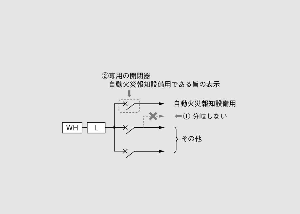 ①常用電源は交流低圧屋内幹線から他の配線を分岐せずに取ること。