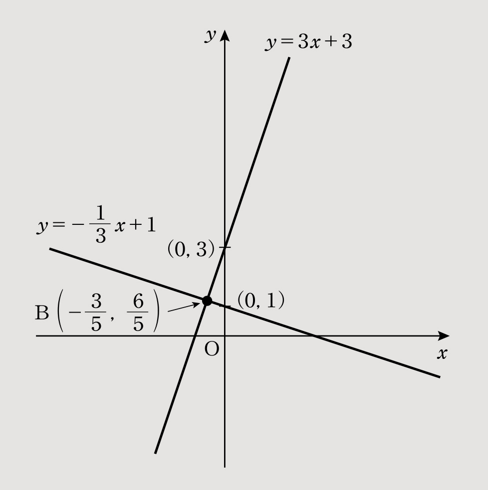 先生 最後に、連立方程式の解と交点の関係について触れておこう。解はx軸、y軸との交点だけでなく、グラフ同士の交点とも関係があるんだ。