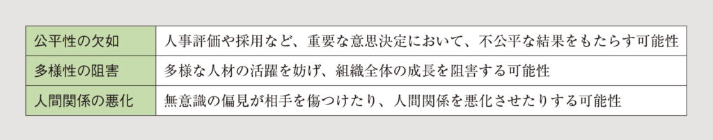 アンコンシャス・バイアスが問題となる理由を表2に示す。