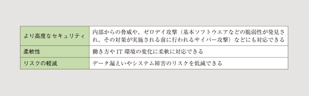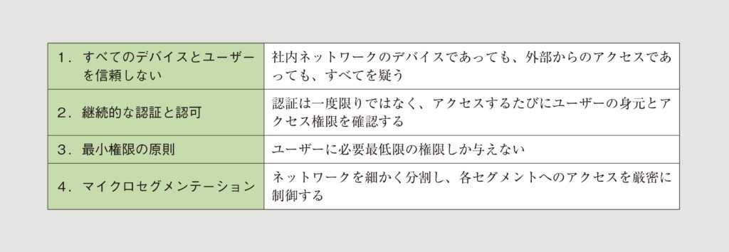 ゼロトラストは表1に示す4つの基本的な考え方によって成立している。