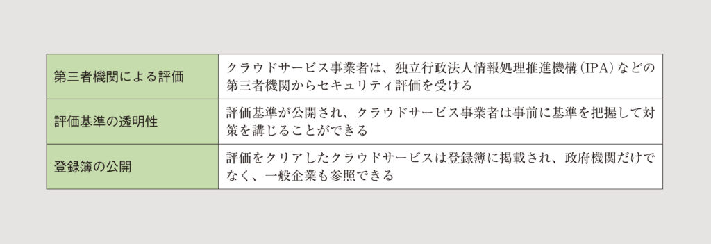 政府情報システムのためのセキュリティ評価制度(Information system Security Management and Assessment Program、ISMAP(イスマップ))はキーワード集2024で初登場したキーワードで、政府が求めるセキュリティ要求を満たしているクラウドサービスをあらかじめ評価、登録することにより、政府のクラウドサービス調達におけるセキュリティ水準の確保を図り、クラウドサービスの円滑な導入に資することを目的とした制度である。政府によって評価、登録されたクラウドサービス一覧は公表され、民間企業なども参照することができる。