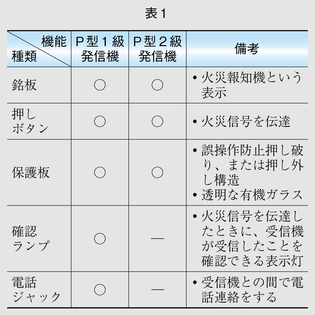 P型発信機には次の事項が定められています(図8、表1)。