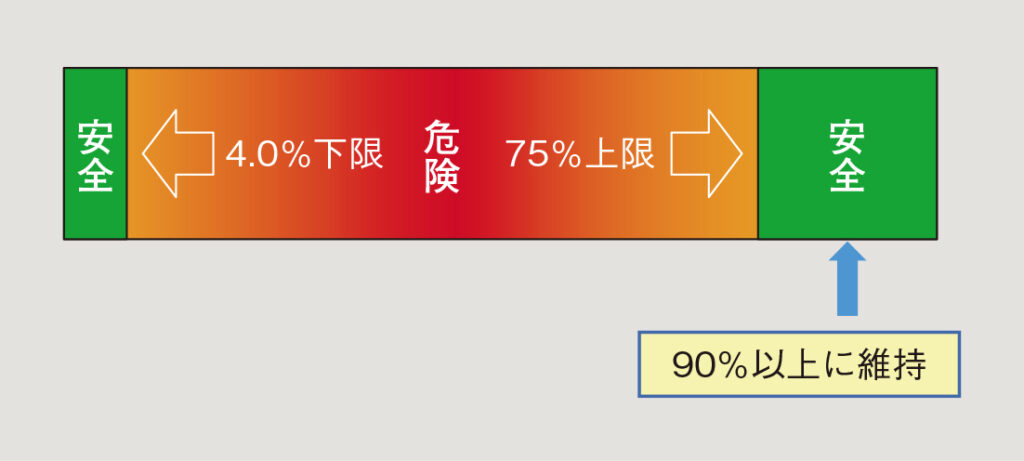 比熱は大きくなるほど熱を奪い、冷却効果が大きくなる。比熱[kJ/(kg・K)]は、空気は1、水素(0.3MPa)は約14で、水素の比熱は空気より大きくなる。