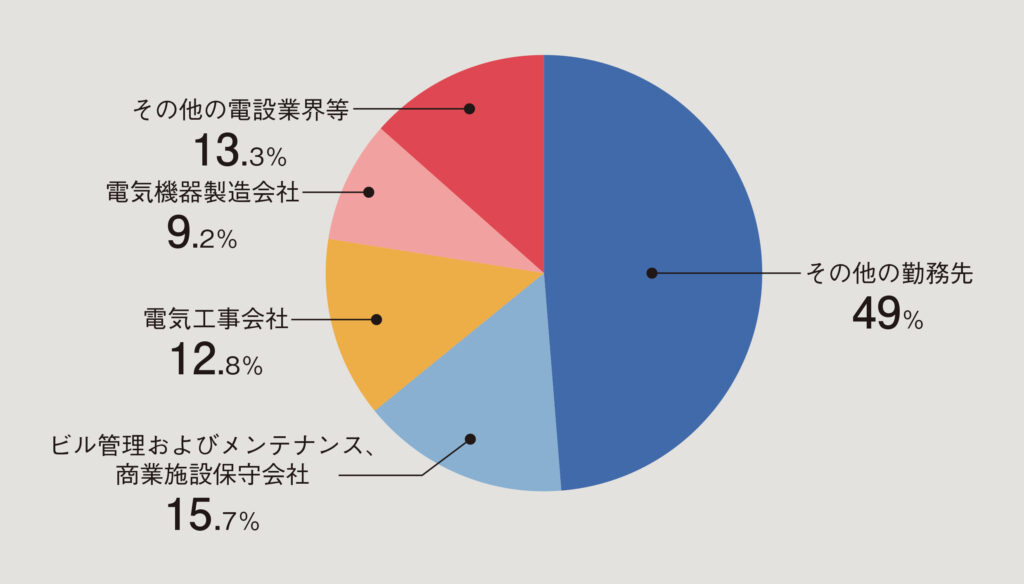 一般財団法人 電気技術者試験センターが公表している「電気技術者試験受験者実態調査」によると、令和4年度の受験者の属性は就業者数が現役の学生数の10倍以上となっている。このうち、就業者の勤務先は図1に示すとおりで、実に、大半の受験者が仕事に携わりながら受験勉強をしているのだ。また、電気以外の業種からのチャレンジャーも多いことがわかるだろう。