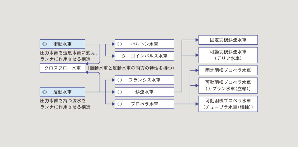 (1)(ア)反動水車 (イ)ペルトン水車 (ウ)衝動水車 (エ)カプラン水車 (オ)多く