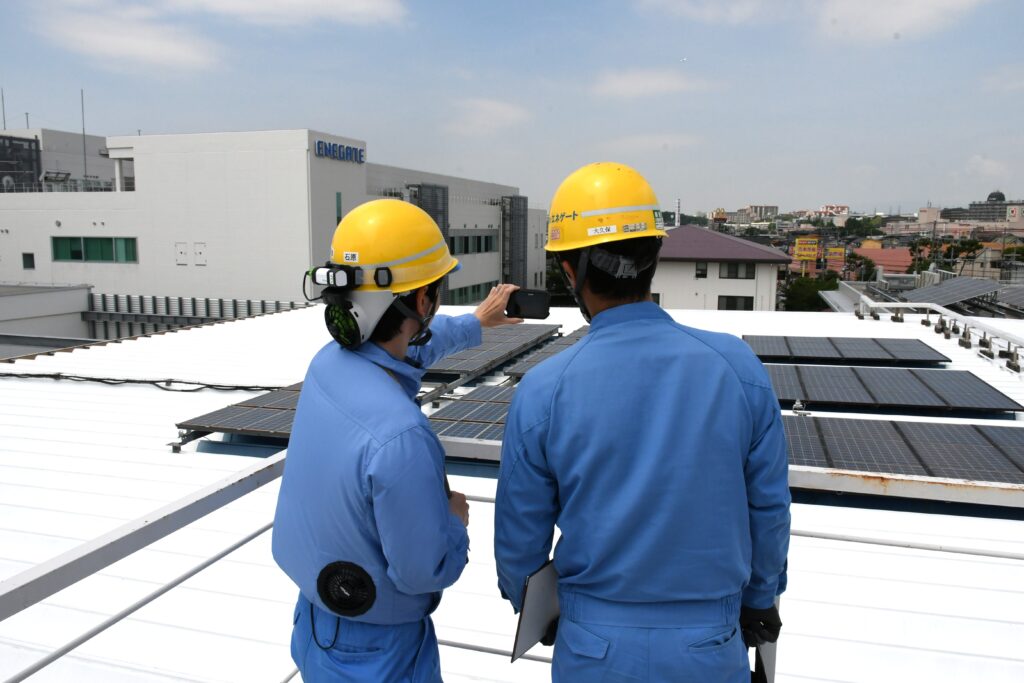 太陽光パネルの状態をチェックして異常がないことを確認し、11時50分、巡視点検が終了。應田さん、石原さんと最終確認のミーティング後、それぞれの所属先に戻っていく。
